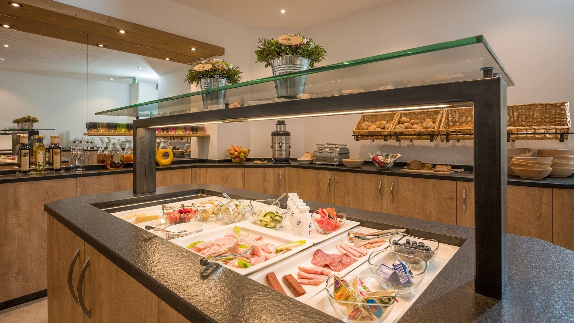 Unser Buffet bietet alles, was das Herz begehrt: Freut euch auf ofenwarmes Brot und Gebäck, Tiroler Speck, Almkäse und Heumilch direkt von heimischen Almen sowie Eier vom regionalen Bauernhof. Liebhaber der gesunden Küche finden in unserer Vital-Ecke Müsli, Nüsse, Saaten und regionales Superfood sowie eine bunte Auswahl an Obst und Rohkost. Süße Verführungen, handgemachte Marmeladen, feine Kaffeespezialitäten und kristallklares Quellwasser runden das Angebot ab. Auch für laktosefreie und pflanzliche Alternativen (Hafer, Mandel, Soja) ist bestens gesorgt.