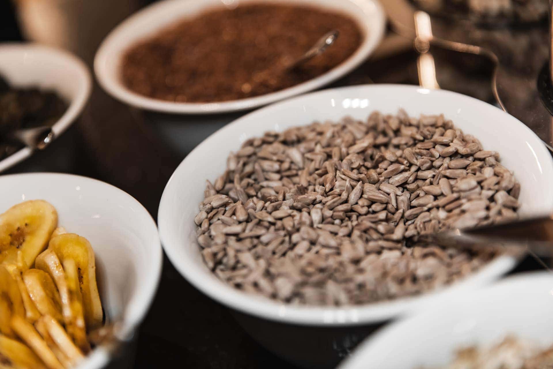 Ja, wir möchten, dass jeder Gast sorgenfrei genießen kann. Unser Buffet bietet eine große vegane Vielfalt mit pflanzlichen Drinks (Hafer, Mandel, Soja) sowie laktosefreie Milch- und Joghurtalternativen. In unserer Vital-Ecke findet ihr zudem eine Auswahl an Körnern, Saaten und regionalem Superfood für euer individuelles Müsli.
